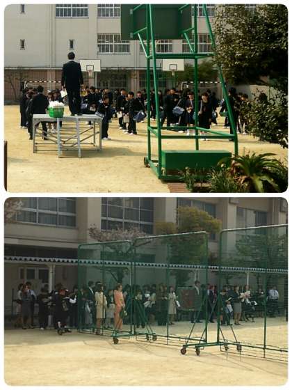 9時頃から新入生と保護者の方々が中庭でクラス分け表を受け取り、歓声が上がっていました。