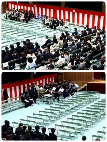 その後、体育館では御来賓、保護者、本校教職員、在校生代表・吹奏楽部員が新入生の入場を待ちました。