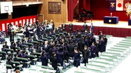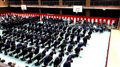 式は滞りなく終了し、新入生は体育館を退場し、教科書類を受け取って各学級の教室へと向かいました。
