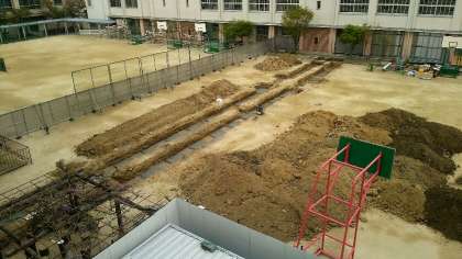 本日も、中庭の仮設渡り廊下建設のための掘削作業が進められました。