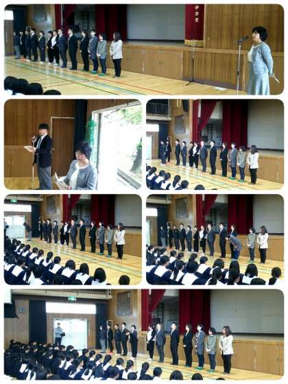まず、最初に校長先生から今年度新たに摂陽中学校に着任された先生方の紹介がありました。昨年度は多くの先生方の異動がありましたが、本年度も多くの先生方が着任されました。