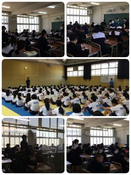 また、格技室では2測定、体育館では学年集会が行われました。教室では視力検査も行いました。