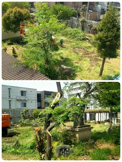 つい先日まで咲き誇っていた桜の木や梅、桃の木も重機で取り除かれていきました。工事の為とはいえ、このような姿を見ると悲しくならずには、いられません。