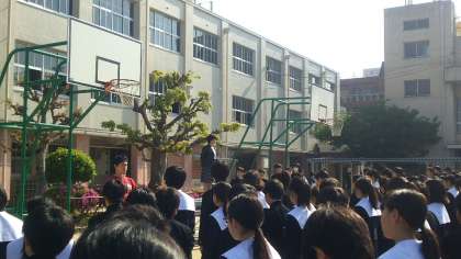 定例全校集会で、校長先生からは