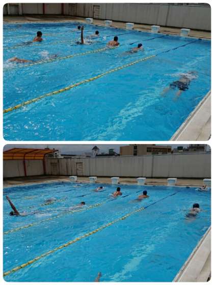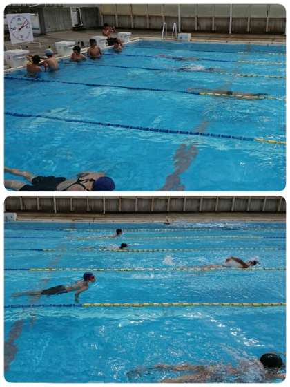 また、風も強めに吹いていたので、水泳部の人たちは寒そうでした。