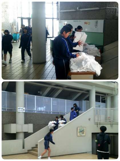 シーツを返却し、集いの広場に集合です。みんな急いで集いの広場に集まってきました。