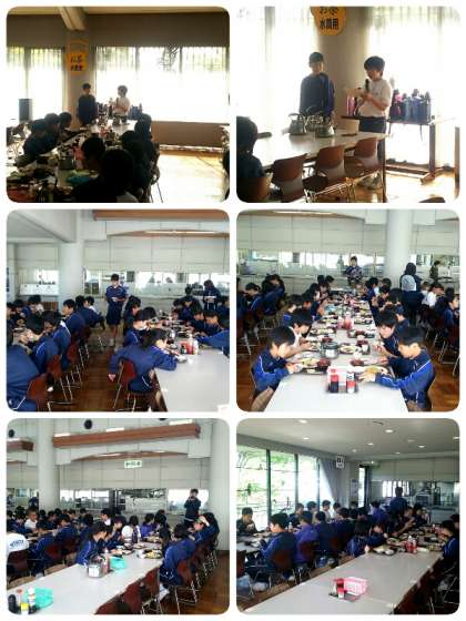 お茶を補給し、一人ずつ朝食を受け取りに行きました。