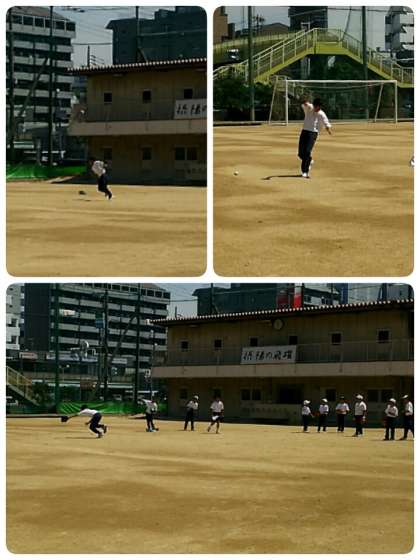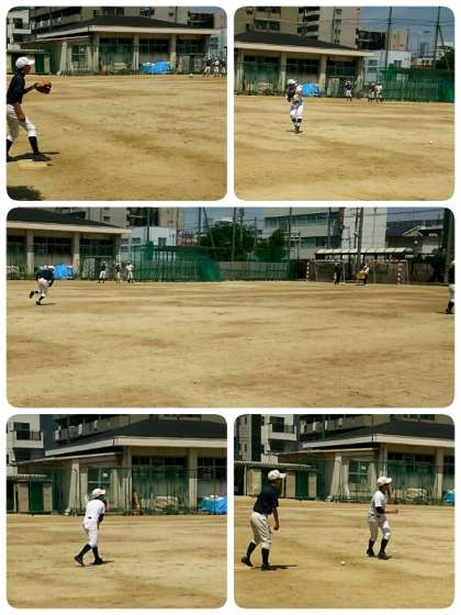 野球部は北グラウンドでノック受けていました。2・3年生は内野で併殺の練習を、1・2年生は外野でフライを捕る練習をしていました。