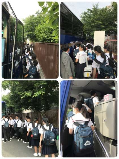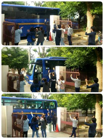 保護者の方や先生方に見送られて、いよいよ出発です。