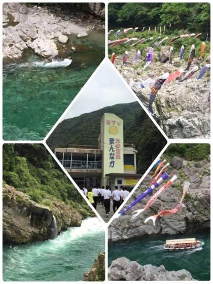 徳島自動車道井川池田インターチェンジで高速道路を下り、下道を走り、昼食場所のレストラン大歩危峡まんなかに到着しました。