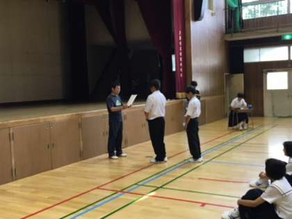 昨日、1年生定例の学年集会がありました。