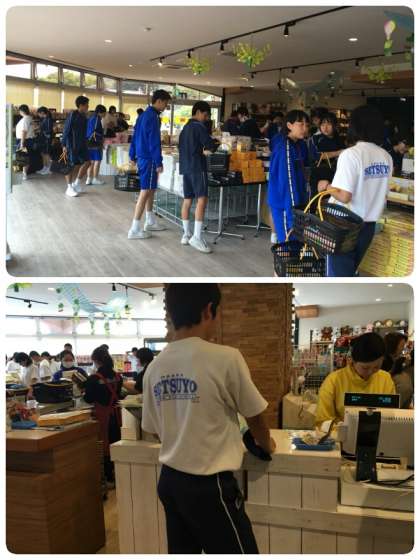 昼食の後、バスは西瀬戸自動車道を走行し、おみやげ購入の場所、みろくの里に到着しました。なかなか慌ただしい購入となったようですが、みんな思い思いに記念の品を探していたようです。