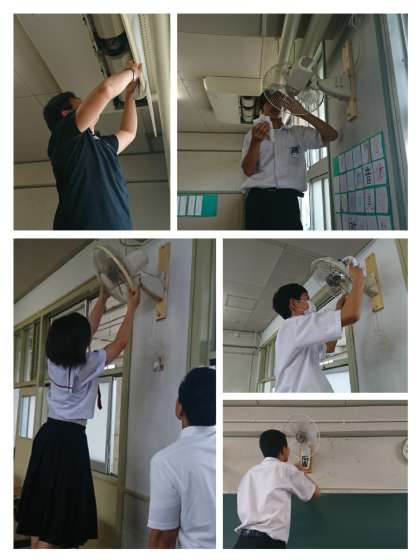 2年生では放課後、美化委員・保健委員の人たちが扇風機とクーラーのフィルターを掃除してくれました。