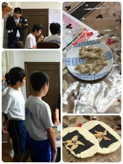こちらのご家庭では郷土料理紹介のお話しを聞きながら、自家製のとっても美味しいジュースや「ねぶと」というお魚のから揚げ風のものなど頂いています。