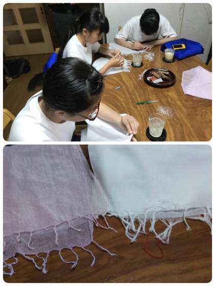 こちらではガーゼの端を縫う作業をしていました。 ストールになったりするそうです。