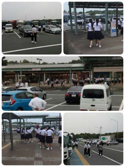 バスに乗り込み、この後は摂陽中学校を目指します。