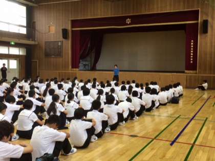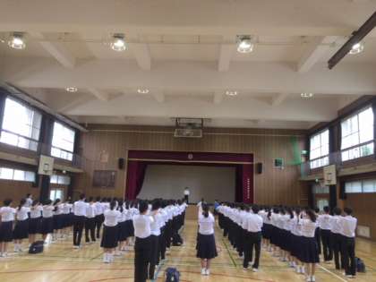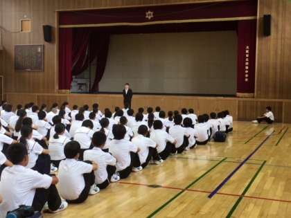 なぜ、先生になろうと思ったのかということや自身が摂陽中学校で過ごした中学時代のようすなど、生徒のみんなにとってはとても身近に感じられる講話でした。