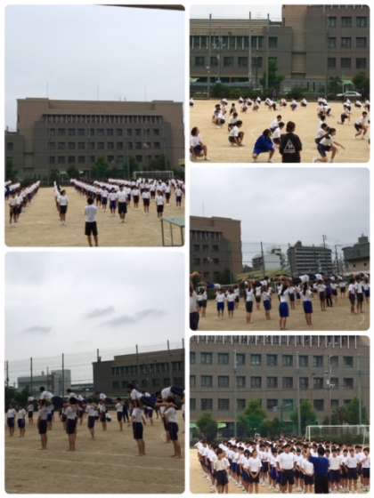 全員リレーの位置どりを練習した後大縄跳びの練習。