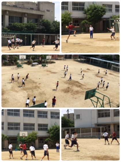 ハンドボール部が元気に駆け回っています。 保護者の方も見守ってくださっています。