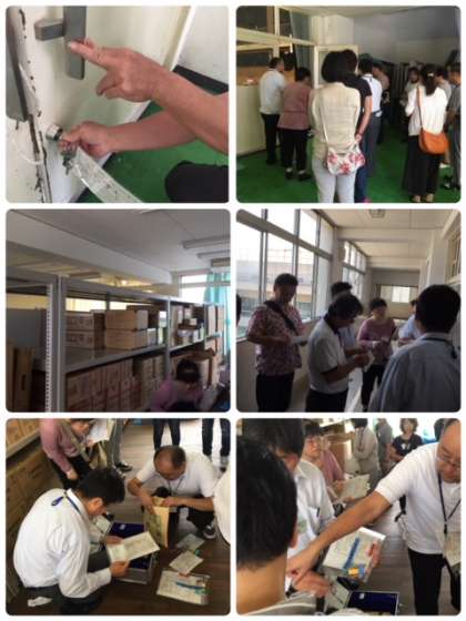 地域の方と平野区の担当の方が来られて、避難所となる部屋や備蓄倉庫などの位置確認等されていました。