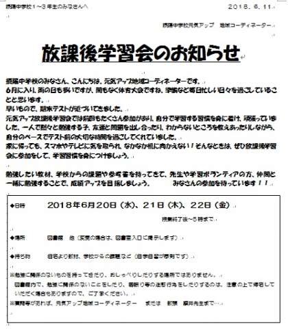 放課後学習会のお知らせ