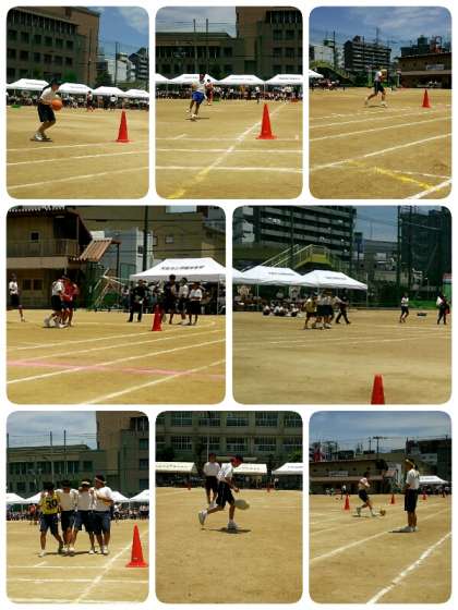 プラスワンリレーは第1走者がラグビーボールを蹴り、第2走者がラグビーボールをかかえながらバスケットボールをドリブルし、第3走者がラグビーボールとバスケットボールをかかえながらサッカーボールをドリブルし、第4走者がラグビーボールとバスケットボールとサッカーボールとバレーボールをかかえながら走り、第5走者が四人五脚でゴールします。