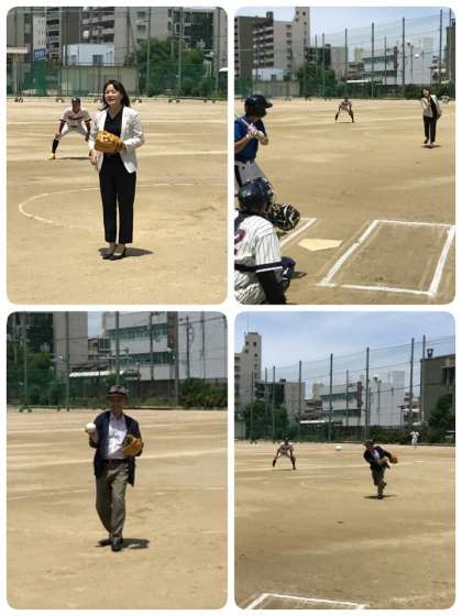 喜連西、平野南両小学校の校長先生にも始球式をしていただきました。