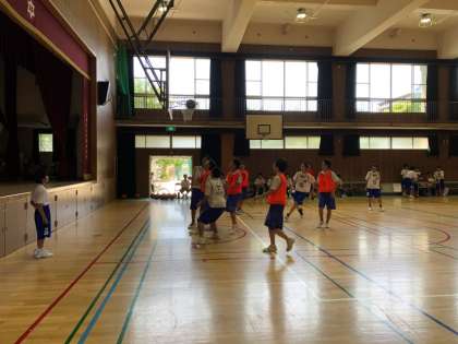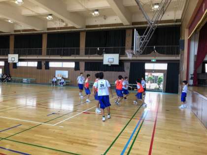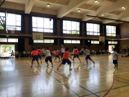 本日、男子バスケットボール部は玉津中学校を招いて練習試合を行っています。