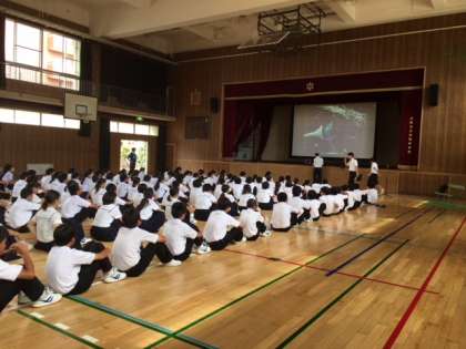 6時間目、平野警察署少年課の方に来ていただき、薬物の怖さについての話をしていただきました。また、喫煙についてや夜間に出歩くことの危険性などについても話をしていただきました。