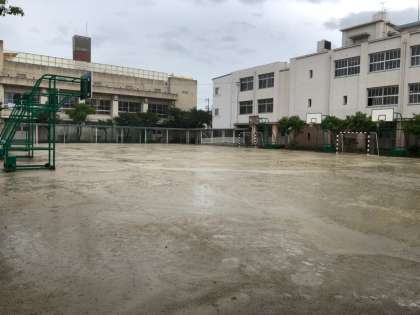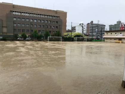 強い雨は数分で弱くなりましたが、グラウンドもアッという間に水浸しでした。