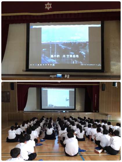 沖縄戦体験者の方のお話を聞くにあたり、今日は沖縄戦についての映像を見ました。