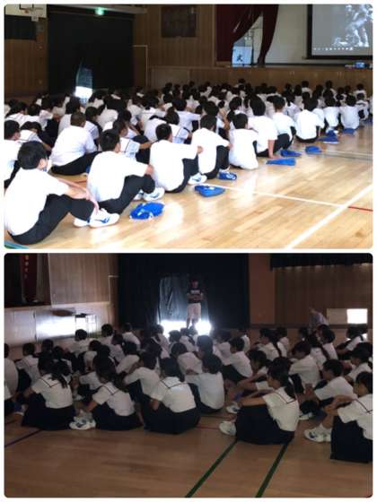 1年生は、6時間目体育館で19日の「平和学習講演会」に向けて事前学習を行いました。