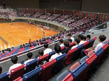 本日、男子バスケットボール部は丸善インテックスアリーナ大阪に出向き、近畿中学校総体を見学しています。