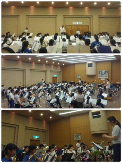 本日、吹奏楽部は昨日に引き続き、明日大阪城音楽堂で行われる「たそがれコンサート2018」のための合同練習を行いました。