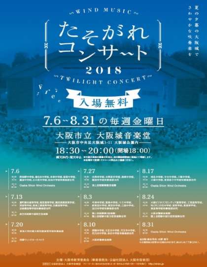 明日10日金曜日、大阪城音楽堂(野外)で行われる「たそがれコンサート2018」に吹奏楽部が出演します。