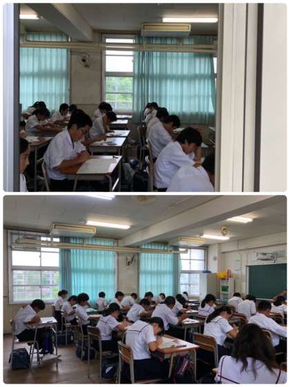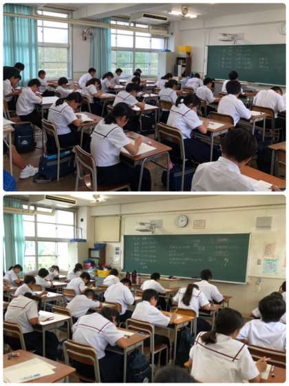 1年生も宿題テストに取り組んでいます。5時間のテストですが、最後まで集中力を切らさずに取り組んでほしいです。