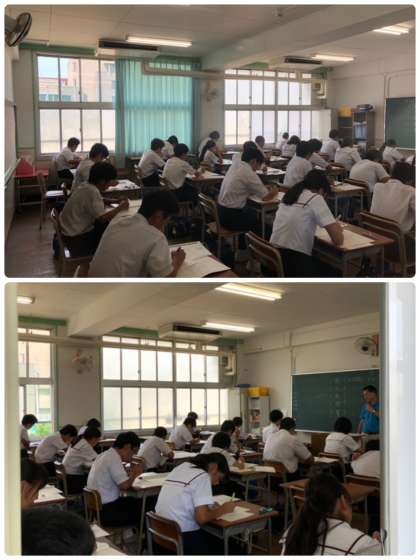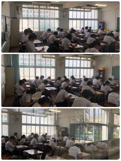 本日、3年生は地震や台風で延期になっていたチャレンジテストに取り組んでいます。