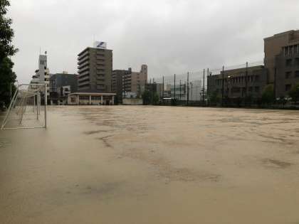 本日は朝から大雨でした。グラウンドもご覧のような状態でしたので、全校集会もできませんでした。先週は台風で大変でしたが、今週のお天気もあまりすっきりしないようです。