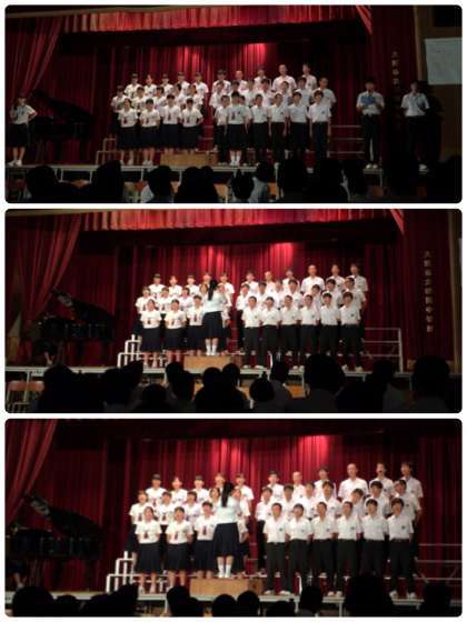 2年生による合唱です。合唱コンクール優秀賞の2組と最優秀賞の3組による発表です。