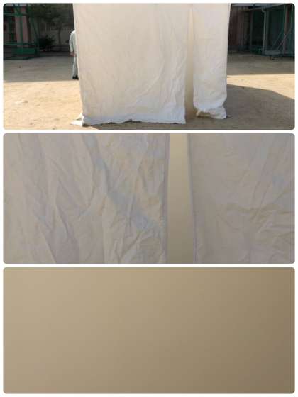 テントの中は白い煙が充満していて、本当に周りが見えませんでした。テントの壁を触りながら、出口で鳴らしている鐘の音を頼りにして中を進んでいきました。