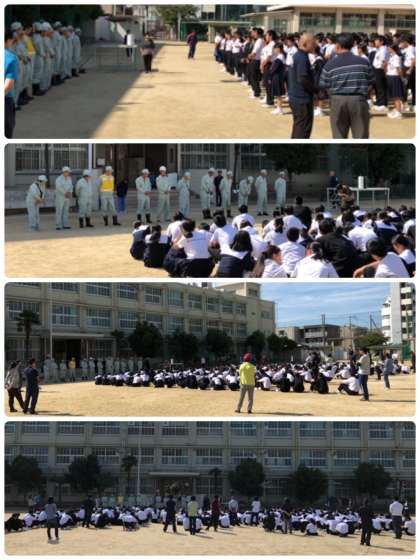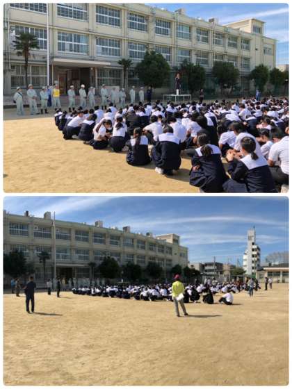 それぞれの体験が終わり、北グラウンドに3学年が集合しました。
