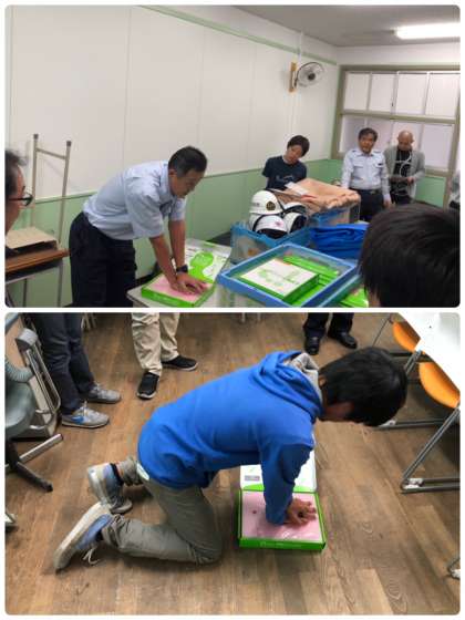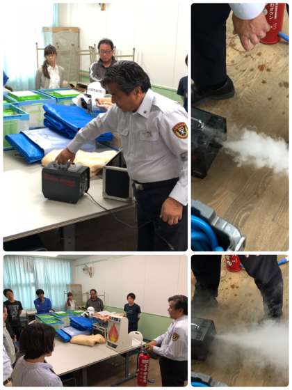 番外編ですが、昨日消防署の方が、各体験のレクチャーを先生方にしてくださいました。