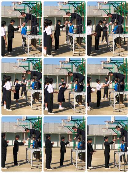 教頭先生からは、「金曜日に後期生徒会役員の人が決まりましたが、今日はこの後、生徒会役員と各種委員会の人の認証式をします。先日も言いましたが、決して人任せにするのではなく、生徒のみんなが協力し、より良い学校にしていってください。