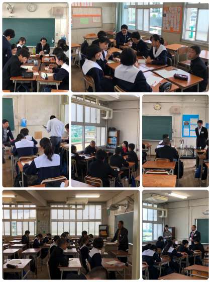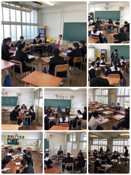 各学級を2つ班に分け、それぞれの班にお二人のゲストティーチャーについていただき、お話をしていただきました。その後、ゲストティーチャーとグループディスカッションを行い、質疑応答をしていく中で、お話の内容を深めていただきました。