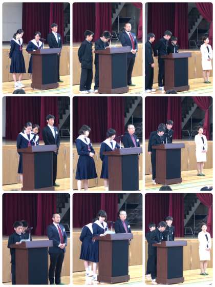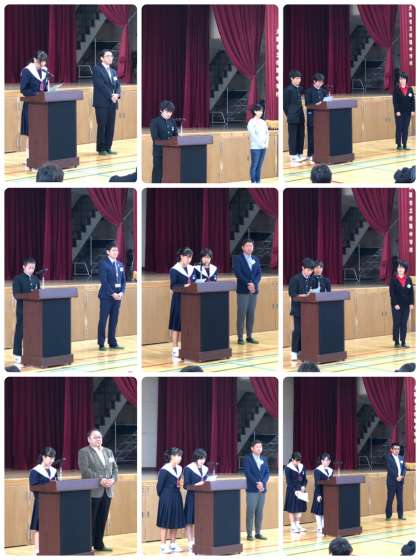 各班がゲストティーチャーから聞き取った内容を学年全体で共有するために、場所を体育館に移し、各班の代表の人が全員の前でその内容を発表していきました。