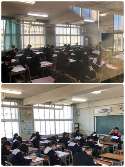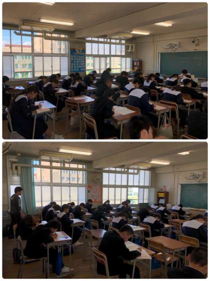 筆記試験とリスニングテストで英語力をはかります。既に3年生と1年生は先週終えています。