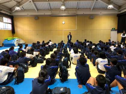 格技室に入り、川渕先生から「今日の活動を見てて、普段の学校生活にもっと生かせることがあるのではないかなと思いました。月曜日からまたしっかり過ごしていきましょう。」という話があり、解散しました。