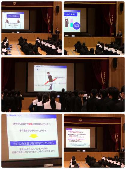 制服の必要性、第一印象の大切さ、面接対策といった三つのポイントについてお話をしていただきました。