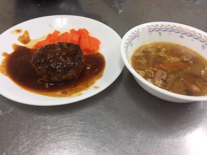 にんじんのグラッセが多く盛りつけてあるように見えます。ソースもしっかりかけました。