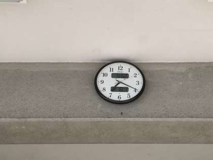 正門付近の時計、今朝の気温は7度を示していました。寒いですが、お天気は良さそうです。